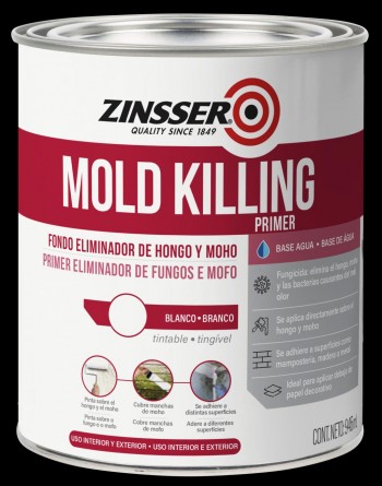O primer Mold Killing Primer é a última inovação da Zinsser. É um fundo/selador protetor à base de água com fungicida que pode ser aplicado diretamente sobre bolor, mofo ou limo, eliminando-os e prevenido seu reaparecimento.
