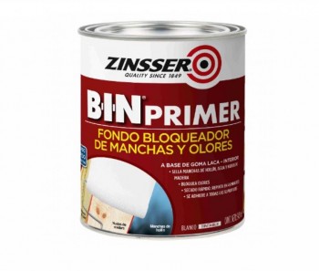 Rust-Oleum® Zinsser® B-I-N® Primer é um fundo bloqueador de manchas e odores. É ideal para manchas de fuligem e danos causados pelo fogo; sela nós da madeira e oculta manchas de umidade e gordura. Sua fórmula à base de goma-laca combina um tempo de secagem ultrarrápido, uma excelente aderência e um extraordinário poder bloqueador. Pode ser aplicado sobre qualquer tipo de superfície de áreas internas. Também pode ser utilizado para bloquear manchas pontuais em superfícies de áreas externas.