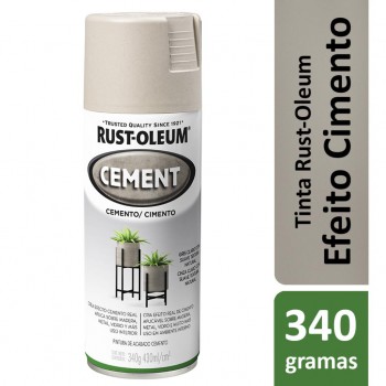 Rust-Oleum® Cement é uma tinta inovadora que deixa um acabamento que proporciona o aspecto e a sensação natural do cimento. Transforma qualquer superfície ou objeto de áreas internas para que pareça que foi feito de cimento. Pode ser aplicada sobre madeira, metal e vidro. Seu uso não é recomendado para superfícies de cimento ou concreto.